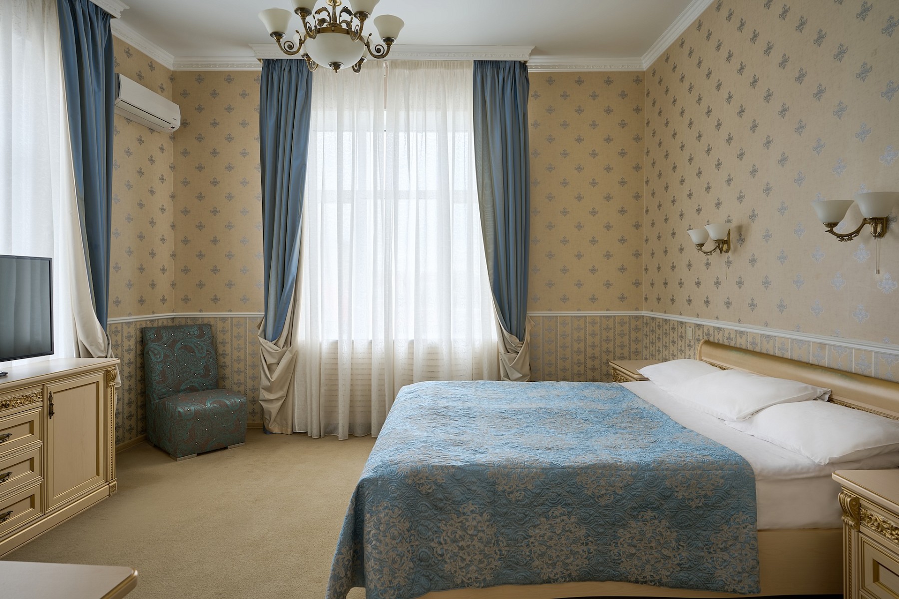 Дизайн воплотил в себе черты французского характера эпохи ХIХ века, в котором также находят отголоски классицизма и барокко.